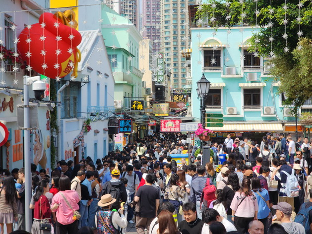 周日雖然已是內地春節假期尾聲,但仍有大批旅客抵澳,本澳多個旅遊區依然人頭湧湧,尤其是大三巴街一帶,警方分別在下午12時55分和4時50分兩度實施單向人潮管制措施,行人只可以由大三巴街單向上行至前往大三巴牌坊,並需要取道周邊街巷如大關斜巷、關前後街和高園街等離開。