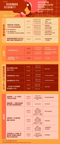 【本報消息】文化局於2026年春節期間呈獻「駿馬銜瑞臨新歲、濠江溢彩融古今」新春系列活動,與大眾共度新春。從大三巴牌坊到媽閣廟前地,從博物館到街巷廣場,多個世遺景點及文化場館將帶來一系列融合非遺、藝術及傳統手作活動,與市民旅客一同體驗沉浸式的文化年味之旅。