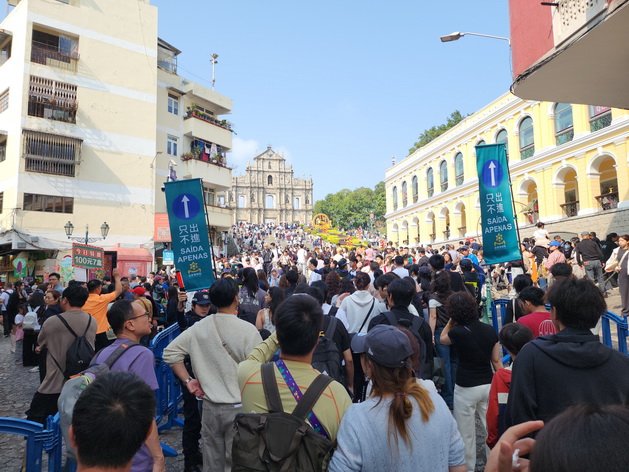 今年內地的農曆新年假期由上周日年廿八開始,至本周一初七「人日」結束,根據治安警察局和旅遊局公佈的春節黃金周初步出入境數據,假期首八日錄得訪澳旅客逾139.7萬人次,連同假期最後一天截至下午五時的逾13.5萬人次旅客入境,即內地九天假期期間本澳累計接待旅客超過153萬人次,日均逾17萬人次,符合假期前本澳旅遊部門日均訪澳旅客量15.8萬至17.5萬人次的預期。