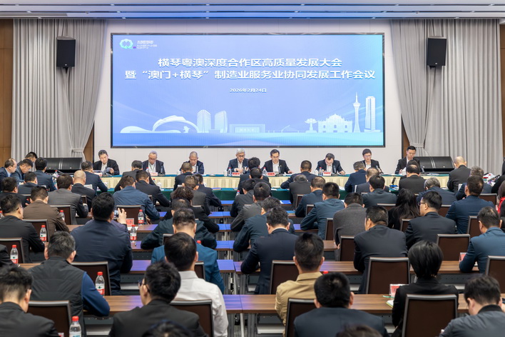 【本報消息】馬年春節後第一個工作日,緊隨全省高質量發展大會的召開,橫琴粵澳深度合作區高質量發展大會暨「澳門+橫琴」製造業服務業協同發展工作會議也在2月24日拉開帷幕,以「起步即衝刺、開局即決戰」的責任感和使命感,凝心聚神抓發展、真抓實幹求實效,確保全年工作開好局、起好步,奮力推動合作區高質量發展再上新台階。合作區執委會主任戴建業,省委橫琴工委副書記、省橫琴辦主任、合作區執委會副主任聶新平參加會議並講話。