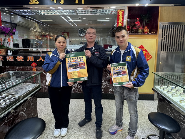 【本報消息】因應鄰近地區近日接連發生以「金包銀」假冒足金飾品進行詐騙的案件,為防範相關犯罪手法蔓延至本澳,保障從事黃金回收及當押業務商戶免受損失,司法警察局社區警務及公共關係處於近日,派員走訪本澳各區約300間珠寶行及押店展開專項防罪宣傳行動,加強業界對新型詐騙手法的認知與警覺性。