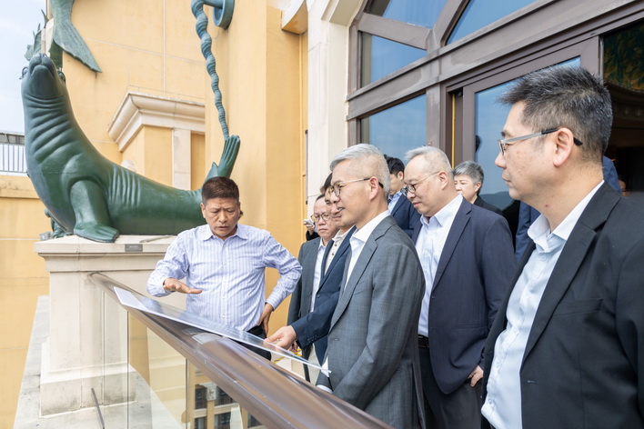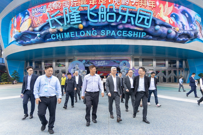 戴建業隨後轉往橫琴長隆國際海洋度假區,登上橫琴灣酒店21樓俯瞰度假區全貌,了解度假區整體規劃建設;又走進長隆飛船樂園項目,實地了解度假區在新春期間的客流量及經營情況,並與長隆集團代表圍繞度假區未來發展規劃等方面交流意見。