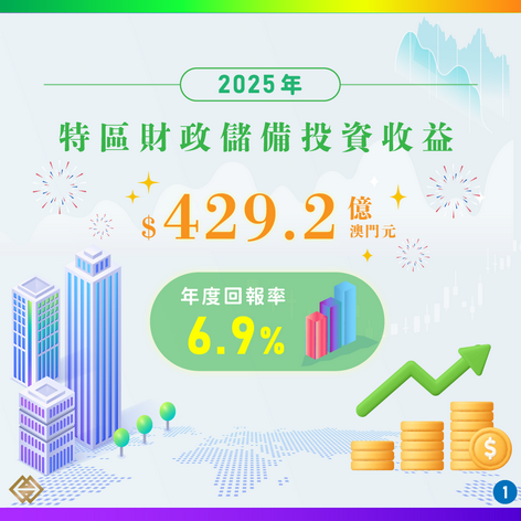 【本報消息】為妥善管理財政盈餘,並為公共財政支付能力提供保障,特區政府透過制定第8/2011號法律《財政儲備法律制度》,由金融管理局負責財政儲備的投資及管理。2025年,澳門特區財政儲備錄得429.2億澳門元的投資收益,年度回報率為6.9%,創歷史新高。