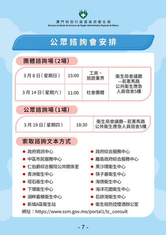 政府周日起就修改第5/2011號法律《預防及控制吸煙制度》進行公開諮詢,諮詢期至四月八日,諮詢首日下午並舉行首場面向工商、旅遊業界的專場諮詢會,衛生局代局長鄭成業致辭時表示,政府透過循序漸進方式逐步擴大禁煙範圍,加強對電子煙規管,並配合煙害宣傳與戒煙服務,相關工作已取得階段性成效。數據顯示本澳整體吸煙率及青少年煙草使用率均呈下降趨勢,更提前實現世界衛生組織訂「煙草使用率相對減少30%」的目標,反映現行控煙政策方向正確。