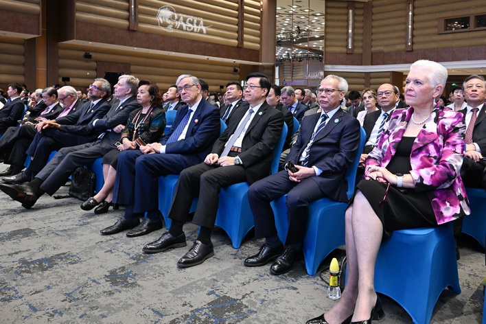 【本報消息】行政長官岑浩輝26日上午出席博鰲亞洲論壇2026年年會全體大會,聆聽中共中央政治局常委、全國人大常委會委員長趙樂際發表的主旨演講。在博鰲期間,岑浩輝也於25晚與海南省委書記、省人大常委會主任馮飛及海南省省長劉小明會面,雙方就高質量推進澳瓊合作,共同助力國家進一步對外開放等議題交流意見。