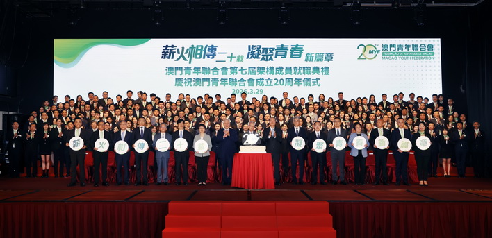 岑浩輝出席澳門青年聯合會第七屆架構成員就職典禮。他致辭時表示,青年人的成長與發展,離不開對時代機遇的理解與把握。國家公佈的「十五五」規劃綱要,提出了多項促進澳門長期繁榮穩定發展的舉措,充分體現了國家對澳門的大力支持與高度關懷。當前,特區政府正在加緊編製澳門「三五」規劃,主動對接國家「十五五」規劃,謀劃澳門未來五年的經濟與社會發展,推動澳門更好融入和服務國家發展大局。就此,他希望廣大青年積極出謀劃策,提出青年一代的意見和建議,與特區政府一起共同做好這件大事。