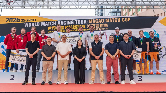 【本報消息】由體育局及北斗星航海賽事管理主辦,海事及水務局及澳門風帆船總會協辦,並由世界帆船對抗巡迴賽作為合作單位的「2026世界帆船對抗巡迴賽—澳門對抗賽」已於周日圓滿結束,賽事冠軍由丹麥船長博爾奇(Jeppe Borch)奪得。