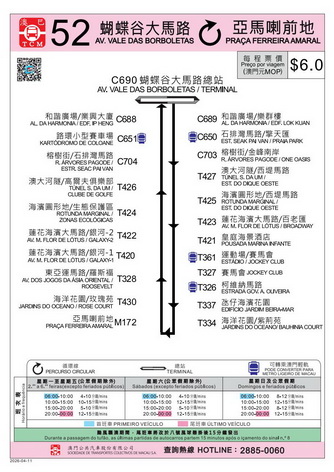 同日起,亦會對52路線的途經路線及站點作出調整,以擴大服務覆蓋範圍,由海洋一帶前往聯生工業區一帶的乘客,可乘搭調整後的52路線到達相關目的地。