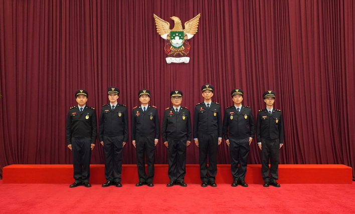 【本報消息】消防局周四在總部暨西灣湖行動站舉行消防總長、副消防總長及一等消防區長晉升儀式。儀式由消防局局長王健主持,副局長張智宏、代副局長李龍傑及各部門主管出席見證。