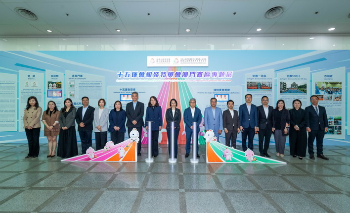 澳門賽區專題展全面展示15運會和殘特奧會澳門賽區的籌備與盛況,現場設有展板介紹運動會會徽、口號及吉祥物的設計意念與精神內涵,並通過一系列精選相片展示籌備倒數階段、志願者服務、碳中和成果、火炬傳遞的精彩瞬間,以體育連結社區、促進社會團結共融的宣傳活動,以及運動員積極拼搏的風采等。現場更展出奬牌、門票、制服、火炬、火種燈、火種盆、特許商品等實物,以及延伸活動包括徵文、繪畫、攝影比賽的得奬作品,讓公眾近距離感受運動會的獨特魅力與歷史意義。