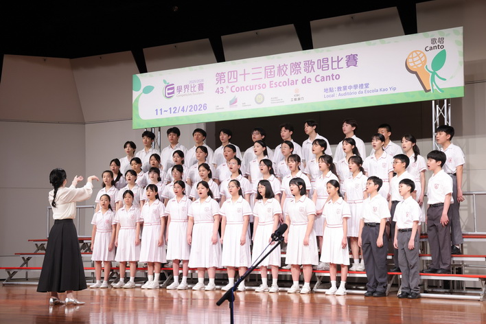 【本報消息】為促進學生的多元發展,發揮學生的潛能以及提升不同領域的藝術水平,並加強各學校間的音樂文化交流,由教育及青年發展局主辦、亞太教育文化交流協會協辦、工銀澳門獎金贊助的2025/2026學年第43屆校際歌唱比賽已於4月11日及12日假教業中學禮堂圓滿完成。