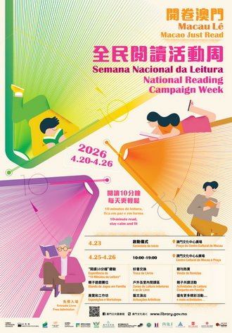 更多活動詳情將陸續公佈,部分活動亦將透過一戶通接受報名,費用全免。活動資訊可瀏覽文化局公共圖書館網頁(www.library.gov.mo/nationalreadingcampaignweek)或我家圖書館手機應用程式,也可於櫃檯服務時間致電856 7576或2884 3105。