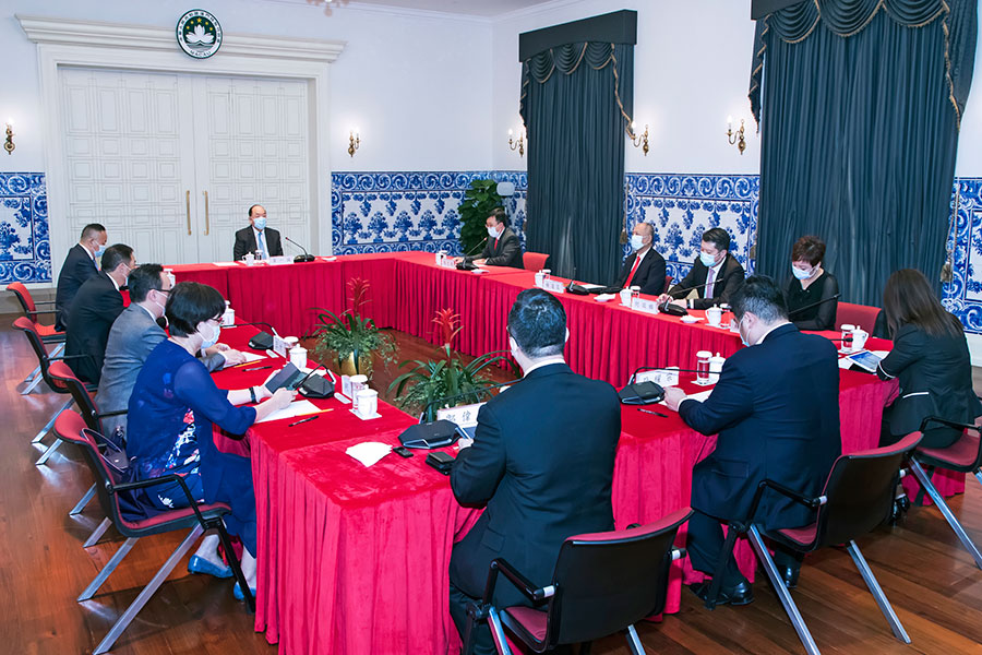 行政長官賀一誠今(27)日在政府總部會見澳區省級政協委員聯誼會會長馬志毅一行,就特區政府制訂2021年財政年度施政報告聽取意見及建議。