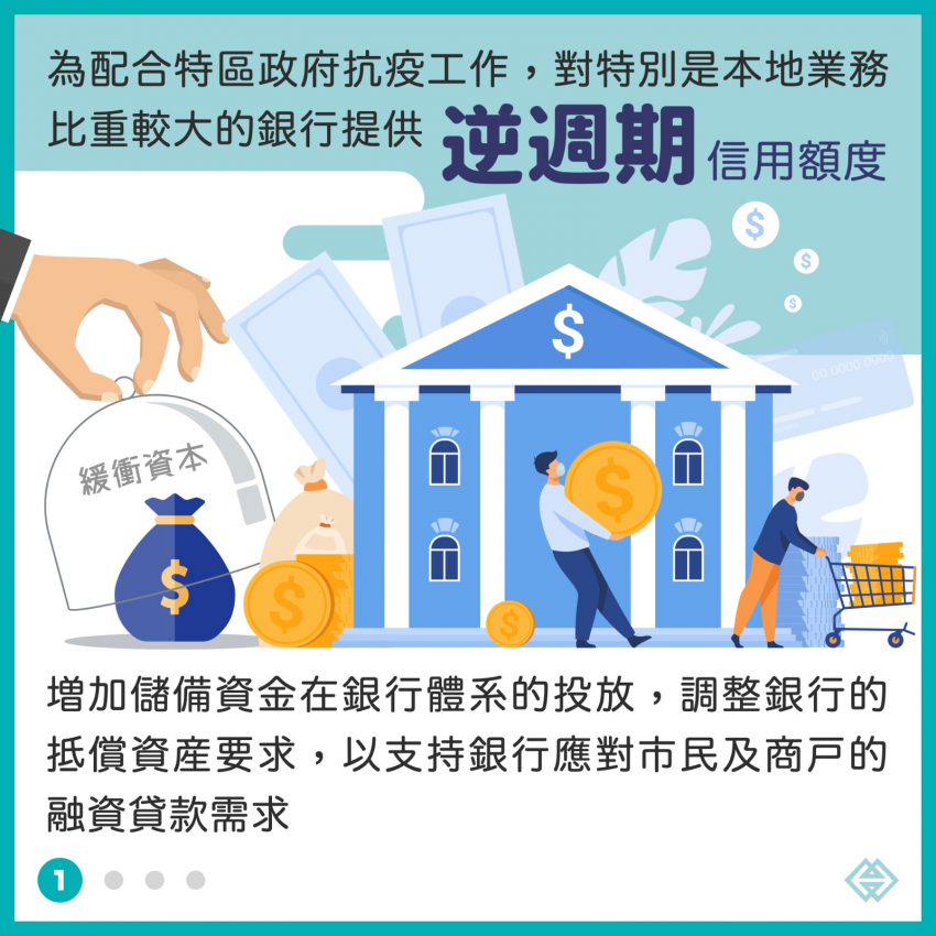 金管局行政管理委員會主席陳守信表示,配合特區的抗疫工作,金管局對特別是本地業務比重較大的銀行,提供短期“逆週期”信用額度,增加儲備資金在銀行體系的投放,也調整了銀行的抵償資產要求,藉此支持銀行應對市民及商戶的融資貸款需求。