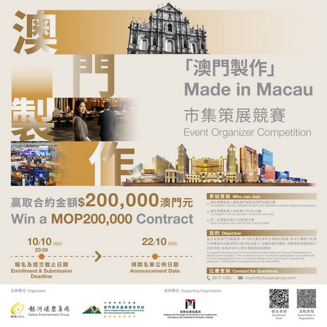 【本報消息】在政府招商投資促進局支持下,銀娛與澳門青年創業孵化中心聯合主辦「『澳門製作』市集策展競賽」,由即日起至10月10日接受合資格的本地中小微企及青創企業報名參與。優勝者將有機會獲得金額達20萬澳門元之合同,並於11月27日至28日在銀娛旗下物業後勤區舉辦為期兩日的「『澳門製作』市集」。是次賽事面向澳門註冊的中小微企及青創企業,參賽負責人年齡須介乎18至44歲的澳門居民;同一企業最多可提交一...