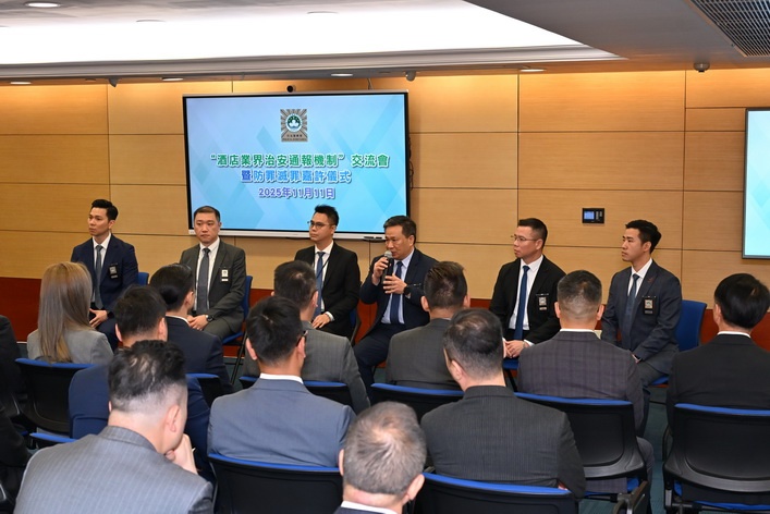 【本報消息】司法警察局舉行「酒店業界治安通報機制」交流會,與本澳休閒企業及酒店業界代表共商優化合作機制,加強預防和打擊酒店及周邊區域的罪案與違法活動,以更有效維護社會治安秩序,保障市民和旅客安全,並持續提升澳門作為旅遊城市的良好形象。會上同時進行防罪滅罪嘉許儀式,八間休閒企業及酒店因在過去一年積極協助司警局警務工作獲頒嘉許狀。來自73間本地休閒企業及酒店的75名業界代表應邀出席交流會,與司警局局長...