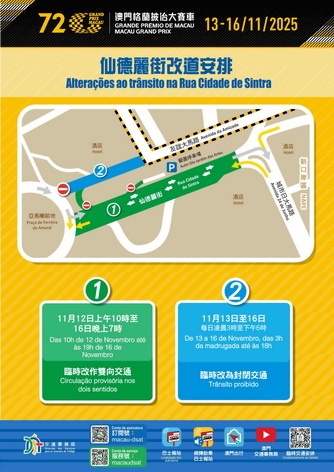 【本報消息】因應體育局舉辦第72屆格蘭披治大賽車,由11月12日至16日期間賽道及周邊道路將分階段實施多項臨時交通管制措施,其中由11月13日至16日期間合共52條巴士路線需作臨時安排,並設兩條免費穿梭巴士路線。為緩解賽道周邊交通壓力,政府多個部門透過協作部署,開通B匝道和調整部份道路工程的施工安排,改善道路通行能力。具體的臨時交通及巴士調整可瀏覽交通事務局專頁。當中,11月12日至16日亞馬喇前...