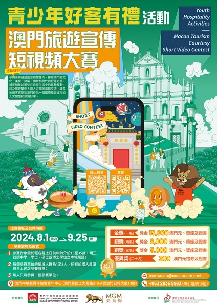 【本報消息】旅遊局與美高梅共同舉辦的「青少年好客有禮活動 —澳門旅遊宣傳短視頻大賽」由即日起接受報名,歡迎15至35歲在學的澳門居民發揮創意靈感製作短視頻參賽。旅遊局持續推行「澳門有禮運動」,今年五月與美高梅合作啟動「發揮澳門好客之道,齊齊參與做旅遊大使」系列培訓活動。繼先前舉辦的專題講座,這次合辦澳門旅遊宣傳短視頻大賽,好讓青少年在製作過程中了解旅遊業及「澳門有禮運動」對澳門的重要性,並通過活動...