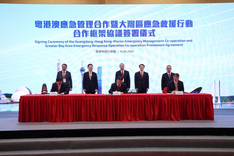 【本報消息】粵港澳三地政府在6月14日在香港簽署《粵港澳應急管理合作暨大灣區應急救援行動合作框架協議》。根據協議內容,粵港澳三地建立合作協調機制,在共同應對粵港澳大灣區突發事件、應急資訊共享、應急理論研究與技術開發、應急人才培訓和交流,以及平台互聯互通等方面全面加強合作。簽署儀式在國家應急管理部副部長徐加愛、國務院港澳辦室務會成員向斌、廣東省常務副省長張虎、香港政務司司長陳國基及澳門保安司司長黃少...