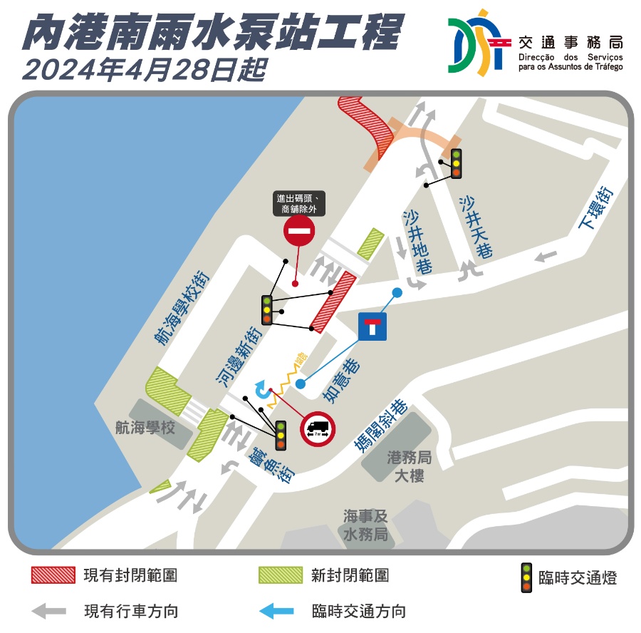 【本報消息】配合公共建設局繼續推進「內港南雨水泵站及下水道工程」,於4月28日起下環街與沙井地巷之間的一段河邊新街、西灣湖景大馬路近河邊新街實施有限度通車;而航海學校街則實施封閉交通。現時介乎如意巷與下環街之間的一段河邊新街正在施工中,是次新增的施工路段為下環街與沙井地巷之間的一段,在此前提下,工程期間將維持兩條行車線往十六浦方向,一條行車線往氹仔方向。為保持區內之交通循環,掉頭往司打口之行車道將...