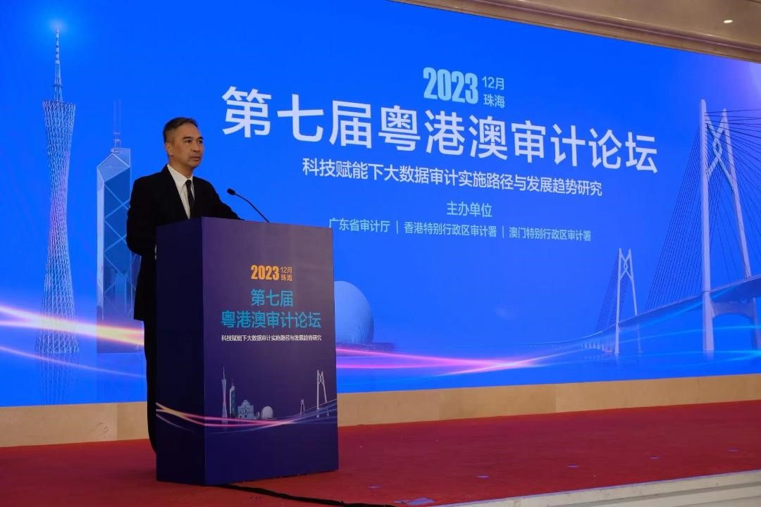 【本報消息】「2023年第七屆粵港澳審計論壇」於12月6日在廣東省珠海市舉行,審計長何永安應邀率團出席,與廣東省審計廳廳長馬學斌、香港審計署署長林智遠等圍繞強化三地交流合作,為大灣區建設貢獻力量等議題展開交流。國家審計署港澳台辦公室主任姜海鷹、珠海市委副書記、市長黃志豪、廣東省港澳辦副主任黃鍛錬等出席開幕式,粵港澳審計機關逾130人參加。 何永安在開幕致詞時表示,在《...