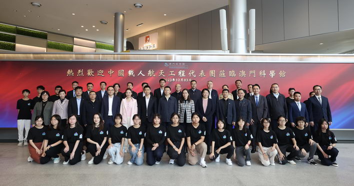 【本報消息】中國載人航天工程代表團到澳門科學館進行考察,並由社會文化司司長歐陽瑜、中聯辦副主任嚴植嬋、教育及青年發展局局長龔志明等陪同參觀科學館,其後還與澳門青年科技村學員共同歡送代表團離澳。 代表團先後參觀了天文館、北斗衛星系統科普國際實驗室、數據科學廳、中國科學家精神展廳、《逐夢蒼穹 探索深海—中國航天航海科技薈澳》科普展覽等。館長邵漢彬和澳門青年科技村學員向代表團介紹北斗衛星...
