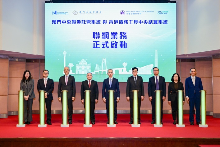 【本報消息】香港金融管理局和澳門金融管理局1月21日聯合宣佈,迅清結算有限公司(外匯基金全資附屬公司)負責營運的債務工具中央結算系統(CMU)與澳門中央證券託管結算一人有限公司(澳門金管局屬下全資附屬公司)負責營運的中央證券託管系統,正式啟動直接聯網,以促進兩地債券市場發展。港澳兩地也於21日舉行「澳門中央證券託管系統(CSD)與香港債務工具中央結算系統(CMU)聯網業務啟動儀式」,經濟財政司司...