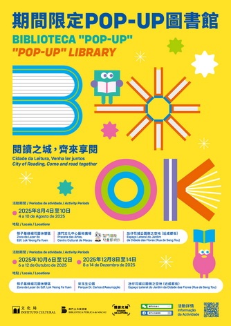 【本報消息】為持續推動全民閱讀,宣揚閱讀豐富生活的理念,文化局將於下半年續辦「期間限定POP-UP圖書館」活動,於社區搭建免費取閱圖書的平台,讓市民體驗「漂書」之樂,將閱讀融入日常生活。下半年的「期間限定POP-UP圖書館」於8月4日至10日、10月6日至12日、12月8日至14日舉行。八月場次將同時設於筷子基綠楊花園休憩區、澳門文化中心藝術廣場及氹仔花城公園側之空地 (近成都街);10月及12月...