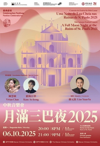 【本報消息】由文化局主辦、澳門樂團承辦的「月滿三巴夜2025」中秋音樂會,將於10月6日(星期一)晚上八時及九時在大三巴牌坊上演兩場。中樂團屆時將演奏多首應節曲目,並邀請到特別嘉賓陳慧敏及歐陽日華現場獻唱,融民族樂韻與世遺美景,在中秋夜與市民遊客歡度佳節。「月滿三巴夜2025」中秋音樂會作為「第五屆粵港澳大灣區文化藝術節」聯動項目,將由中樂團駐團指揮廖元鈺執棒,帶領中樂團奏響耳熟能詳的節日歌曲,...