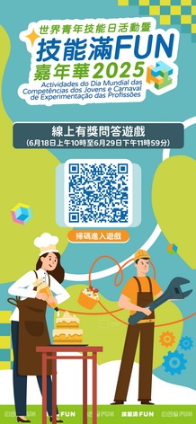 【本報消息】每年7月15日為聯合國訂立的「世界青年技能日」,以彰顯技能培訓的重要性,期望鼓勵青年透過學習技能,拓闊職涯發展。為響應「世界青年技能日」,勞工事務局及澳門青年發展服務中心合辦、新青協協辦「世界青年技能日活動暨技能滿FUN嘉年華2025」活動,並推出線上有獎問答遊戲,是次問答遊戲由6月18日(10時)至29日(23時59分)期間舉行,歡迎市民踴躍參加。活動對象為12歲或以上之澳門居民(以...