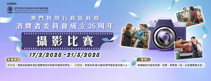 【本報消息】消費者委員會致力打造「誠信澳門」及慶祝成立35周年舉辦的攝影比賽現已開始收件,至3月21日截止收件,歡迎澳門居民踴躍參與。有興趣參賽人士可登入消委會網頁「澳門特別行政區政府消費者委員會成立35周年攝影比賽」專區(www.consumer.gov.mo/pcreg?lang=zh) 的網上報名系統提交作品;或者填妥比賽報名表並連同參賽作品的電子檔案光碟,放入信封內並密封好,信封面註明參...
