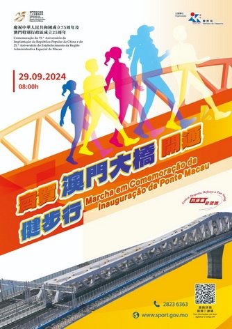 【本報消息】為熱烈慶祝中華人民共和國成立75周年及澳門特別行政區成立25周年,體育局將於9月29日在澳門大橋開通前舉辦「齊賀澳門大橋開通健步行」。活動共提供10,000個名額,讓市民大眾能夠參加康體活動的同時,體驗澳門大橋建設及欣賞澳門優美的風景。主辦單位舉行新聞發佈會公佈活動詳情時表示,「齊賀澳門大橋開通健步行」活動將於9月29日上午八時舉行,參加者將由澳門大橋連接氹仔北安引橋處出發,行至澳門大...