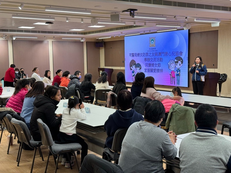 【本報消息】為慶祝國際婦女節,司法警察局婦女防罪之友與澳門唐心兒協會合作舉辦參觀交流活動,組織親子團參觀司法警察學校,藉此增強警民合作和提升防罪滅罪意識,以及向社會各界傳遞關愛婦女和弱勢群體、共建和諧社會的正面訊息。三八國際婦女節將至,為向弱勢婦女和兒童群體送上節日關懷,司警局婦女防罪之友與澳門唐心兒協會組織親子團共逾50人,於3月2日參觀司法警察學校並進行交流活動。期間,一眾家團及成員全情投入...
