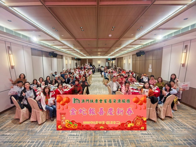 【本報消息】農曆新年是中國傳統的節日,澳門扶康會家屬資源服務藉著新春佳節與照顧者一起相聚及聯歡,讓照顧者感受到溫暖及參與節日的喜悅。「金蛇報喜慶新春」活動於日前舉行,並邀請到會員大會主席飛迪華、理事會主席陳才發、總幹事周惠儀、總辦事處行政經理卓敏儀、澳門中醫藥學會會長石崇榮、花藝導師吳茵娜、排排舞導師吳少英、健身氣功班導師劉志煊、歌唱班導師黃均鎏等出席。嘉賓與照顧者互相團拜及祝福,場面溫馨歡樂。陳...