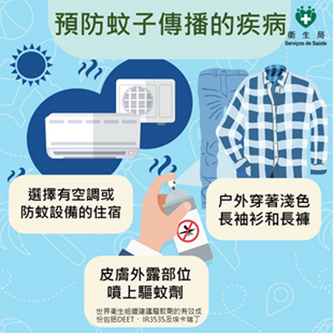 【本報消息】隨著暑假來臨,許多居民計劃外遊或出外探親。為確保旅途安全,讓居民安心享受假期並保障個人及家人的健康,衛生局提醒居民於外遊前做好防範疾病的準備,建議在出發前先查閱目的地有關傳染病流行情況、旅行期間做好防蚊措施、注意個人及食物衛生等,以降低感染登革熱、呼吸道傳染病及胃腸道疾病的風險。衛生局建議居民在暑假外遊期間加強採取相關防範疾病的措施,首先在外遊前應留意當地近期是否有疾病爆發或特殊健康風...