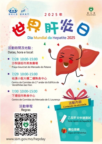 【本報消息】世界衛生組織將每年7月28日定為「世界肝炎日」,今年「世界肝炎日」的主題為「讓我們一起攻克肝炎」,並倡議各地擴大肝炎衛生服務以響應在2030年消除肝炎這一公共衛生威脅的目標。為落實《健康澳門藍圖》所訂定的總體目標和指標,澳門特區政府積極推動「健康社區」計劃,通過政府跨部門協作及聯動社團機構力量,發揮協同效應,持續開展多元化社區健康科普活動,致力提升居民健康素養與促進自我健康管理能力。藉...