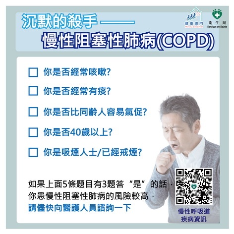 【本報消息】11月20日是世界衛生組織及全球慢性阻塞性肺病倡議組織訂立的「世界慢性阻塞性肺病日」,今年的主題是「知道你的肺功能」(Know Your Lung Function),希望結合健康照護專業人士與病患團體的力量,喚起全球關注和加深了解慢性阻塞性肺病(慢阻肺)。慢阻肺是常見的慢性病之一,嚴重威脅人類生命,全球平均每10秒就有一人因此病而死亡。統計暨普查局2023年的數據顯示,慢性下呼吸道疾...