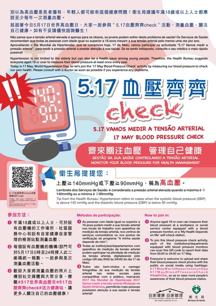 【本報消息】世界高血壓聯盟把每年5月17日定為「世界高血壓日」,今年主題是「準確測量,有效控制,健康長壽」(Measure Your Blood Pressure Accurately, Control It, Live Longer),藉此提高公眾對高血壓的認識和血壓測量的準確性,控制高血壓及其相關慢性病(如中風、心臟病和腎病等),從而使公眾延長健康壽命。高血壓是本澳最常見心血管疾病,統計暨普查...